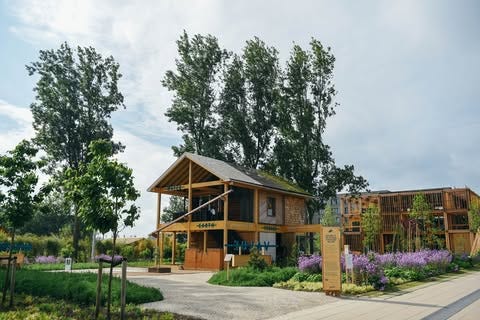 The showhome was called The Exploded View Beyond Building but was called The Embassy of Circular and Biobased Building by Dutch Design Week. The project was constructed using the circular building method which was built in a factory and has a layout that’s based on a standard grid that could be a template for house design varieties. Burned wood was used in this project and served as a coating replacement and maintenance. The mycelium was used on one of the biohomes’ walls which was light, water resistant, fire retardant and had a sound acoustic property. Mycelium was also used to make an insulation wall. In the biohome's fungi section, all the building partitions including the 3D printed table, the composite floor and a lam were made out of mycelium.
